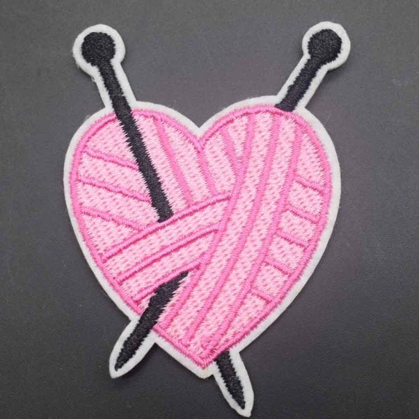 Heart Shaped 'Yarn and Needle' Embroidered Sew Iron On Patch Description: Turn some heads with...