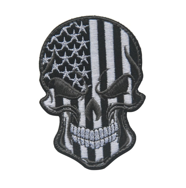 American Flag 'Monochrome | Camouflage' Skull Flag Embroidered Velcro Patch