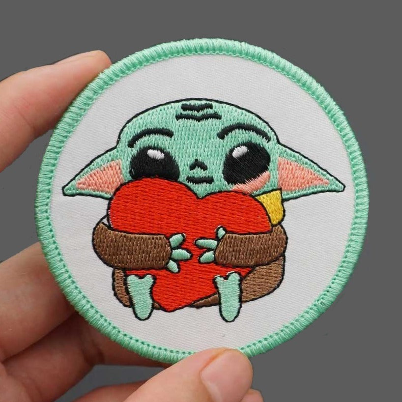 Empire and Rebellion 'Baby Yoda | Hugging Heart | Round' Embroidered Velcro Patch