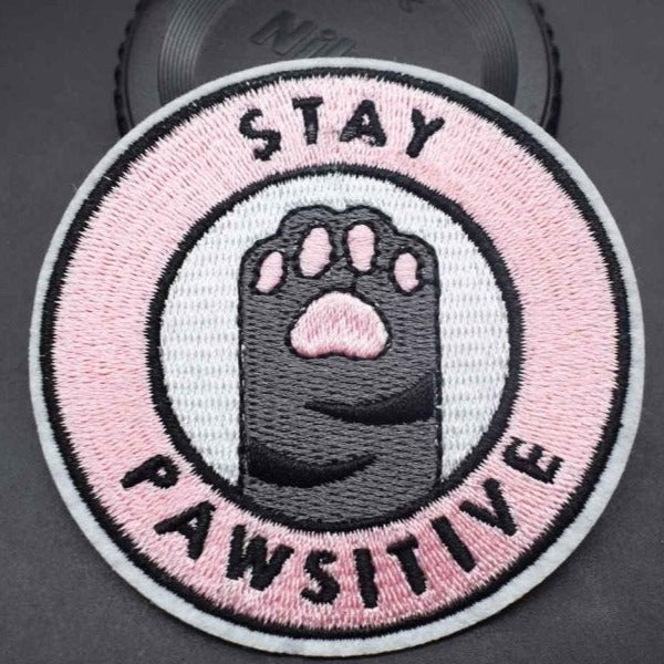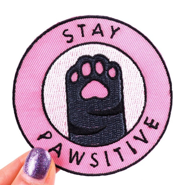 Cute Paw 'Stay Pawsitive' Embroidered Patch