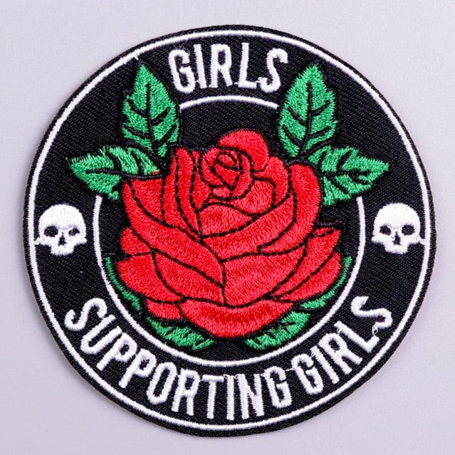 Rose And Skull 'Girls Supporting Girls' Embroidered Patch