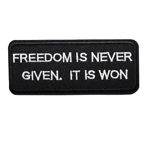 Quote 'Freedom Is Never Given | It Is Won' Embroidered Patch