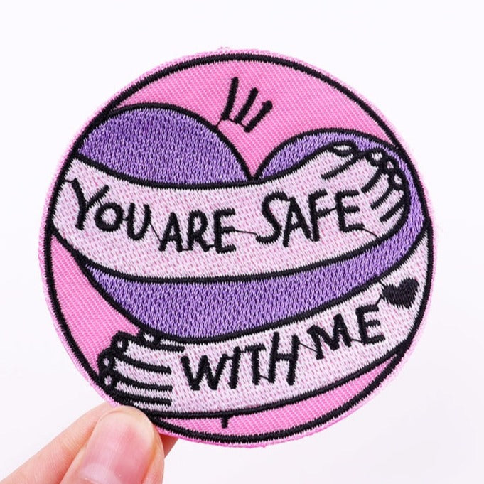 Hugging Purple Heart 'You Are Safe With Me' Embroidered Patch