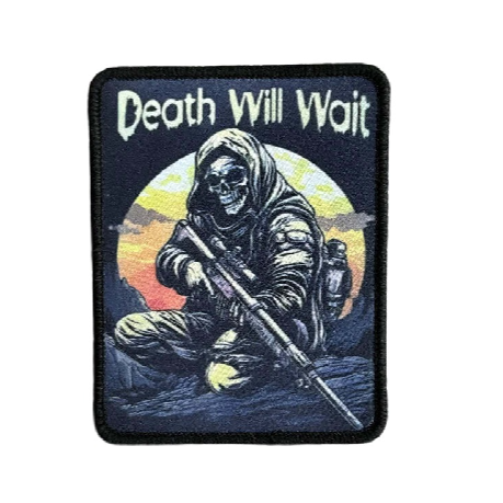 Skull Soldier 'Death Will Wait' Embroidered Velcro Patch