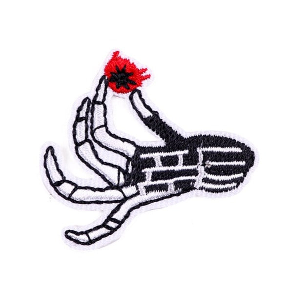 Skeleton Hand 'Holding A Common Poppy' Embroidered Patch