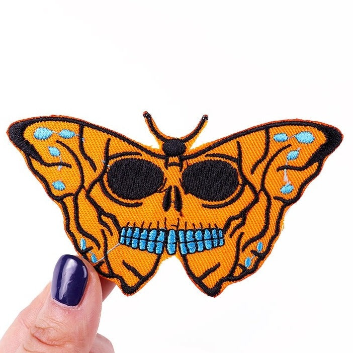 Skull x Orange Butterfly Embroidered Patch