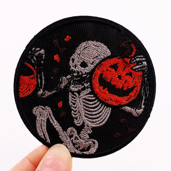 Skull 'Skeleton Holding A Pumpkins | Laughing' Embroidered Patch