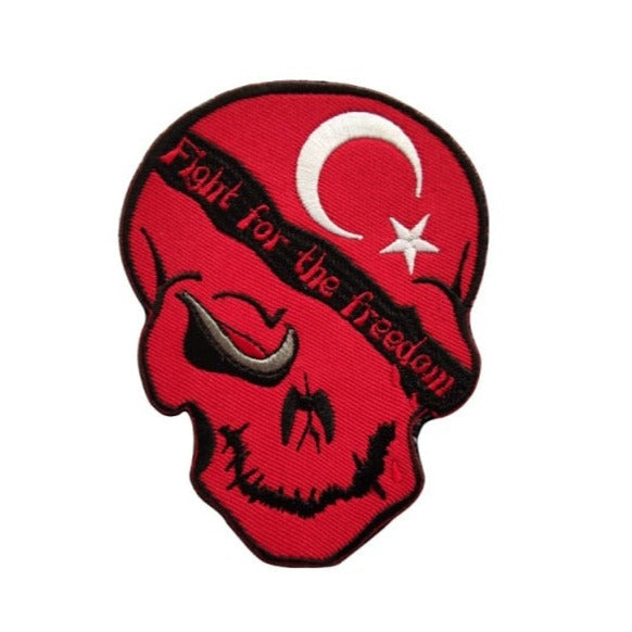 Turkey Flag Skull 'Fight For The Freedom' Embroidered Velcro Patch