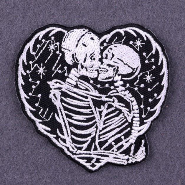 Heart Shaped 'Skeleton Couple | Kissing' Embroidered Patch
