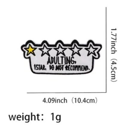 Adulting ‘1 Star Do Not Recommend’ Embroidered Patch Description: