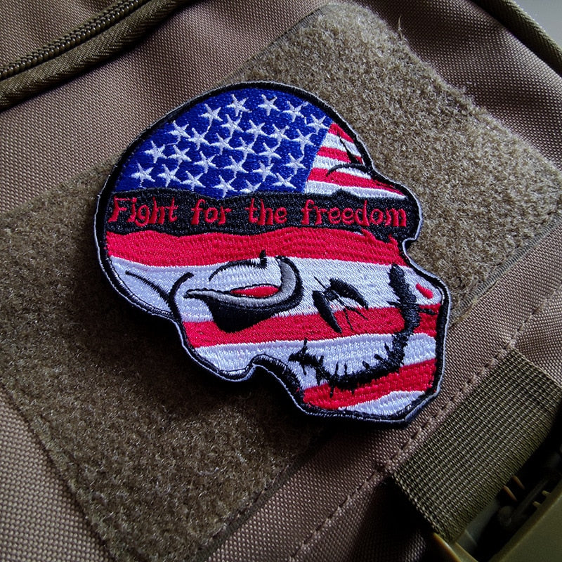 Turn some heads with our American Flag Skull 'Fight For The Freedom' Embroidered Sew On Velcro Patch! Our American Flag Skull 'Fight For The Freedom' Embroidered Sew On Velcro Patch is great for adding to denim jackets, bags, and more. Our American Flag Skull 'Fight For The Freedom' Embroidered Sew On Velcro Patch is made for the most demanding of necessities.