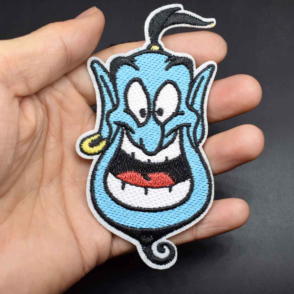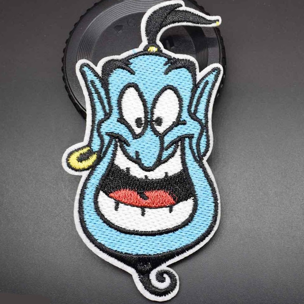 We recommend sewing on this Arabian Nights 'Genie | Head' Embroidered Sew Iron On Patch for jackets, vests and heavy duty use. This Arabian Nights 'Genie | Head' Embroidered Sew Iron On Patch can be ironed on to denim items.