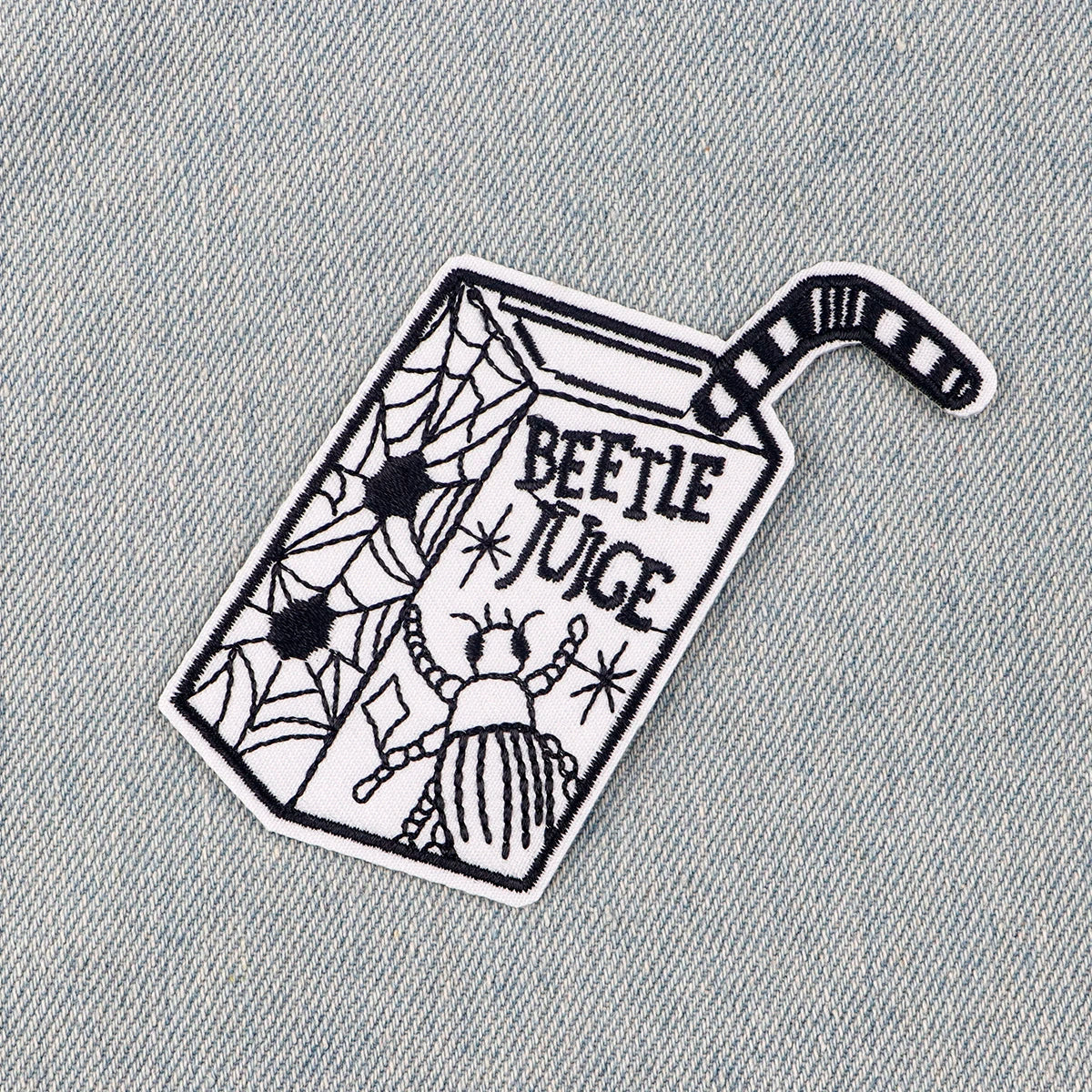 We recommend sewing on this Beetlejuice ‘Juicy Spider’ Embroidered Patch for jackets, vests and heavy duty use. This Beetlejuice ‘Juicy Spider’ Embroidered Patch can be ironed on to denim items.