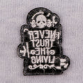 Turn some heads with our Beetlejuice 'Never Trust The Living' Embroidered Patch! Our Beetlejuice 'Never Trust The Living' Embroidered Patch is great for adding to denim jackets, bags, and more. Our Beetlejuice 'Never Trust The Living' Embroidered Patch is made for the most demanding of necessities.