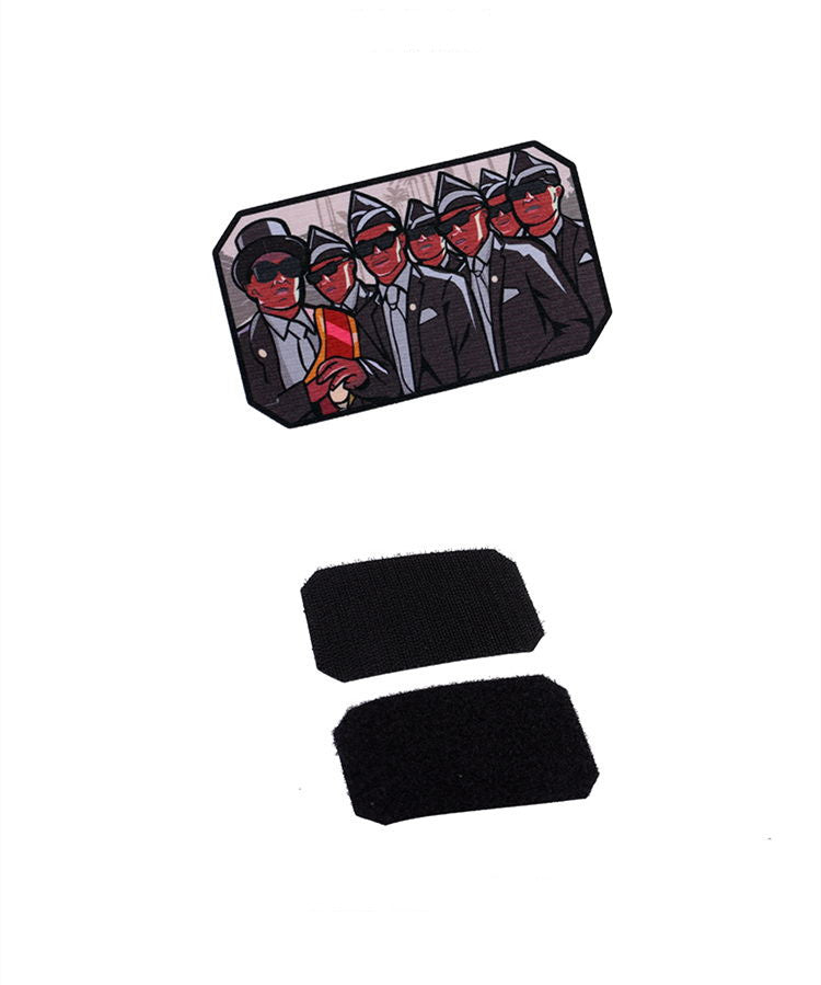 Turn some heads with our 'Dancing Pallbearers Coffin | Group Portrait' Embroidered Velcro Patch! Our 'Dancing Pallbearers Coffin | Group Portrait' Embroidered Velcro Patch is durable and incredibly bold. This 'Dancing Pallbearers | Group Portrait' Embroidered Velcro Patch is made for the most demanding of necessities.Each 'Dancing Pallbearers | Group Portrait' Embroidered Velcro Patch is made of 100% PVC for durability and rubber for crisp clean colors. It comes to you individually poly bagged. Great 'Dancing Pallbearers | Group Portrait' Embroidered Velcro Patch for all groups and individuals looking to share their individual styles.