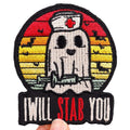 Boo Ghost Nurse 'I Will Stab You' Embroidered Patch