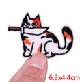 We recommend sewing on this Calico Cat 'Knife In Mouth | Sitting' Embroidered Patch for jackets, vests and heavy duty use. This Calico Cat 'Knife In Mouth | Sitting' Embroidered Patch can be ironed on to denim items.
