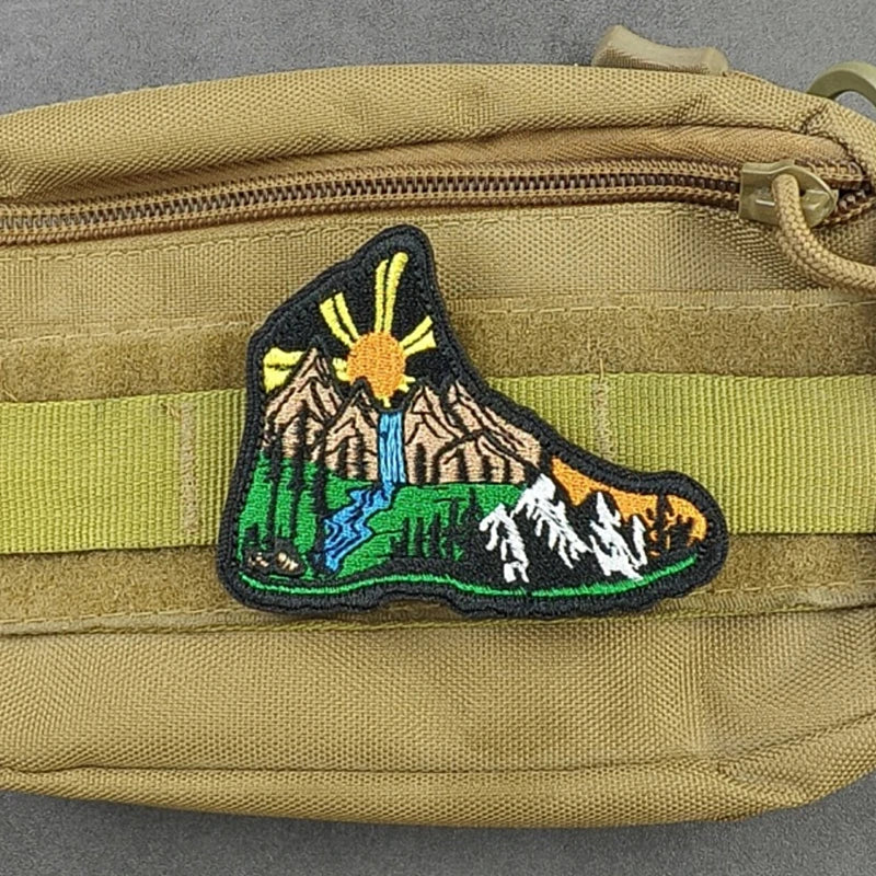 Camping Adventures 'Shoe Mountains' Embroidered Velcro Patch Description: