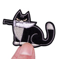 We recommend sewing on this Cat 'Knife In Mouth | Fierce' Embroidered Patch for jackets, vests and heavy duty use. This Cat 'Knife In Mouth | Fierce' Embroidered Patch can be ironed on to denim items.