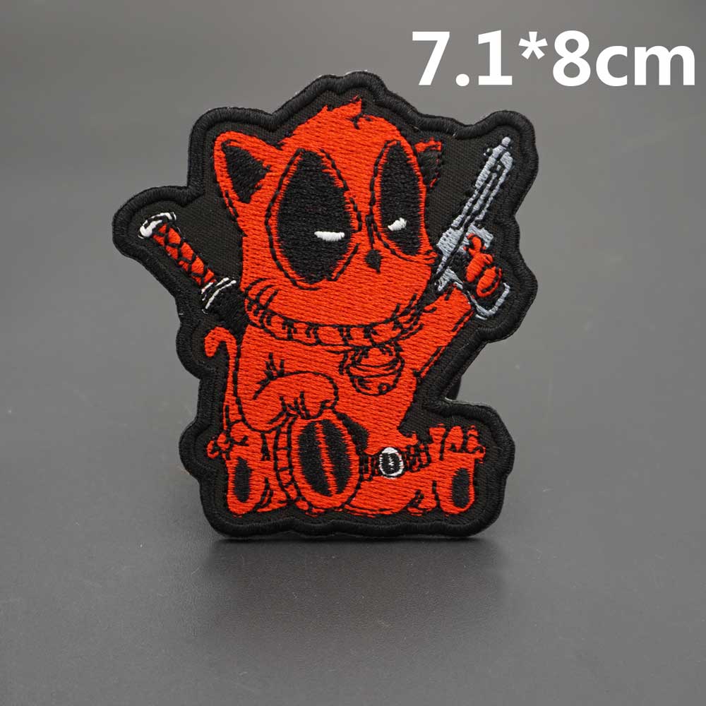 We recommend sewing on this Cat x Deadpool Embroidered Patch for jackets, vests and heavy duty use. This Cat x Deadpool Embroidered Patch can be ironed on to denim items.