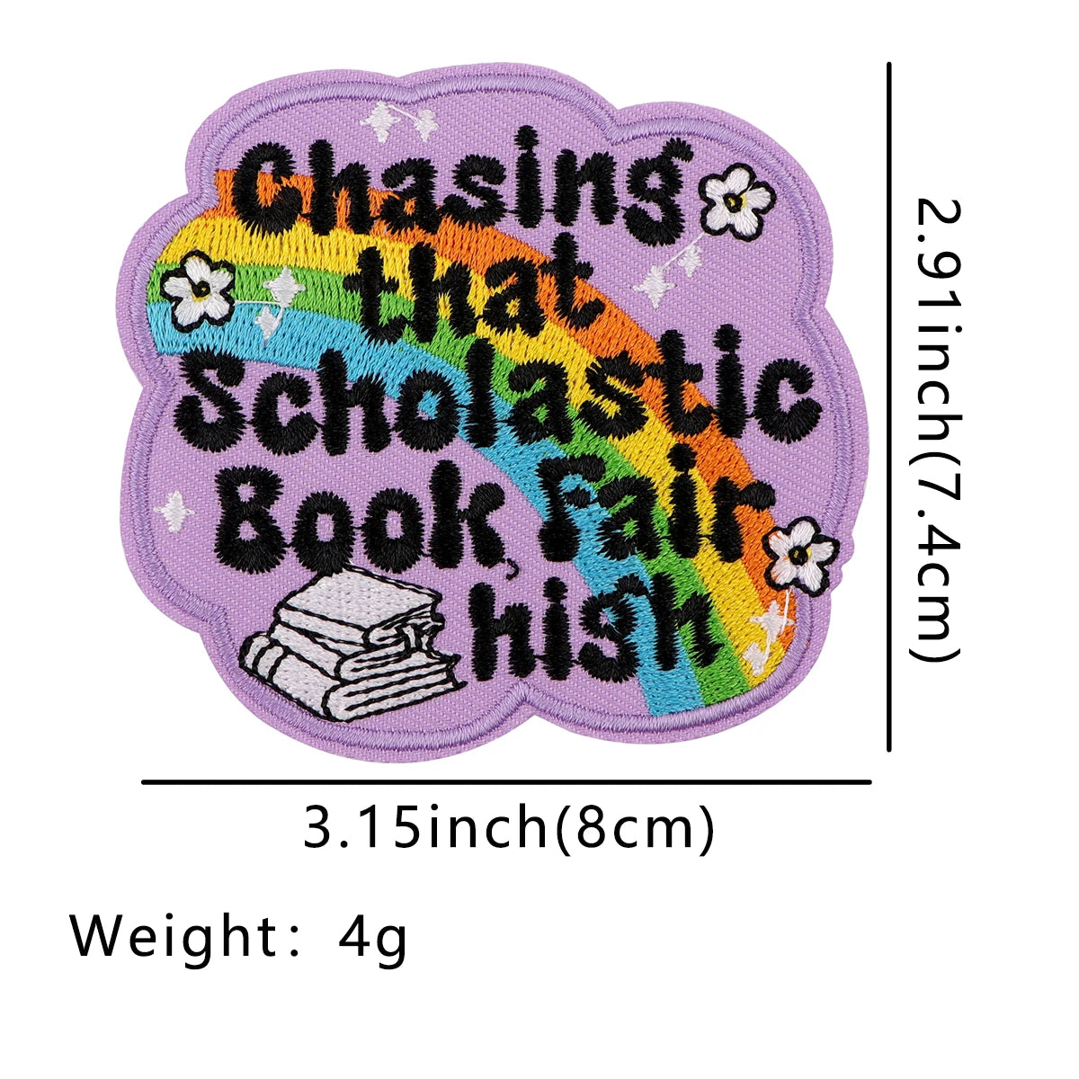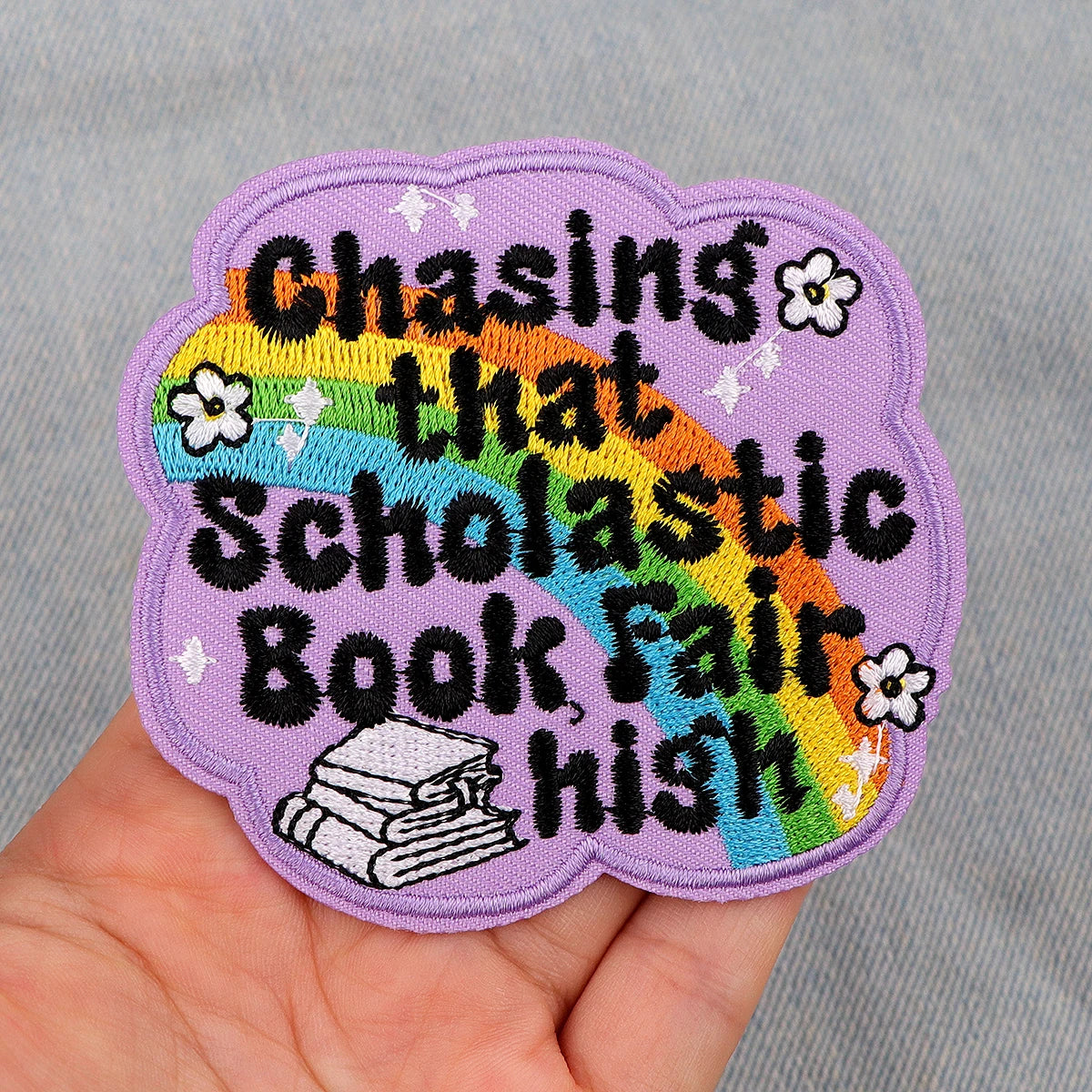 Chasing That Scholastic Book Fair High Embroidered Patch Description: