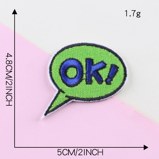 Comic Bubble 'OK!' Embroidered Sew Iron On Patch Description: