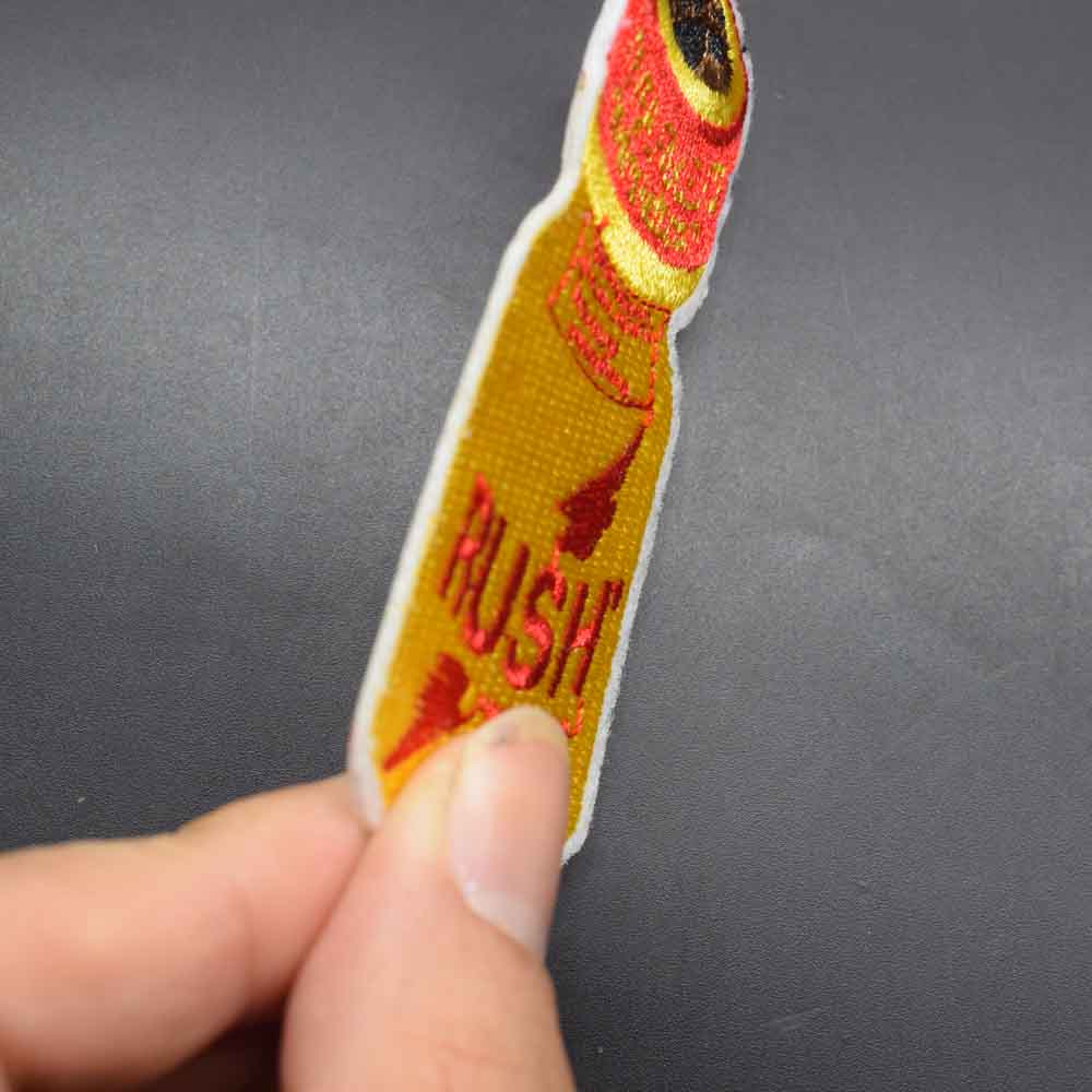 We recommend sewing on this Cool 'Rush | Bottle | Yellow' Embroidered Patch for jackets, vests and heavy duty use. This Cool 'Rush | Bottle | Yellow' Embroidered Patch can be ironed on to denim items.