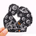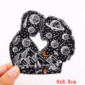 We recommend sewing on this Couple Silhouette 'Planets' Embroidered Patch for jackets, vests and heavy duty use. This Couple Silhouette 'Planets' Embroidered Patch can be ironed on to denim items.