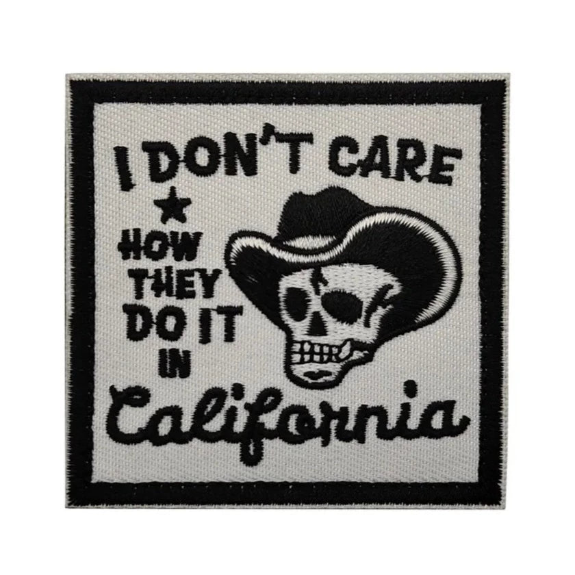 Turn some heads with our Cowboy Skull 'I Don't Care How They Do It In California' Embroidered Velcro Patch! Our Cowboy Skull 'I Don't Care How They Do It In California' Embroidered Velcro Patch is great for adding to denim jackets, bags, and more. Our Cowboy Skull 'I Don't Care How They Do It In California' Embroidered Velcro Patch is made for the most demanding of necessities.