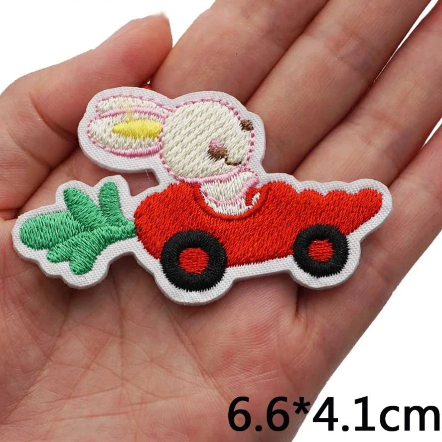 Turn some heads with our Cute Bunny 'Riding Carrot Car' Embroidered Patch! Our Cute Bunny 'Riding Carrot Car' Embroidered Patch is great for adding to denim jackets, bags, and more. Our Cute Bunny 'Riding Carrot Car' Embroidered Patch is made for the most demanding of necessities.