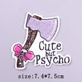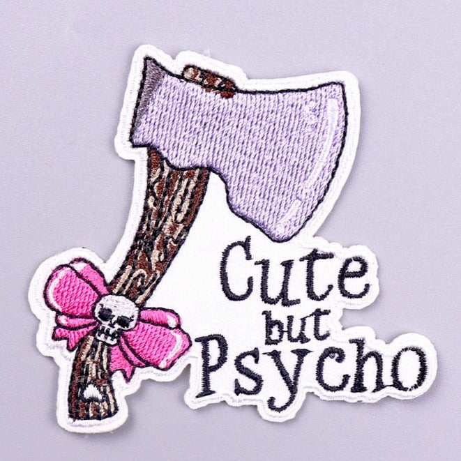 Cute But Psycho 'Axe With Skull Ribbon' Embroidered Patch Description:
