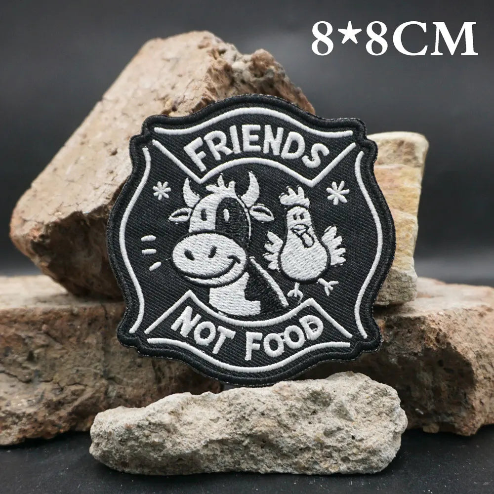 Order your Cute Cow and Chicken 'Friends Not Food' Embroidered Patch today!