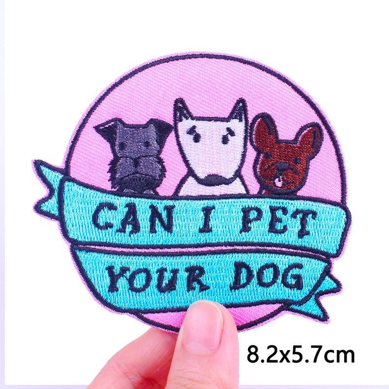 Cute Dogs 'Can I Pet Your Dog' Embroidered Sew Iron On Patch Description: