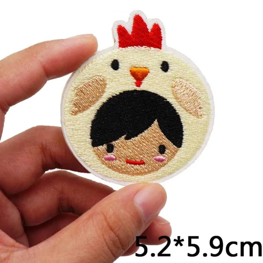 We recommend sewing on this Cute 'Girl Head with Chicken Hat' Embroidered Patch for jackets, vests and heavy duty use. This Cute 'Girl Head with Chicken Hat' Embroidered Patch can be ironed on to denim items.