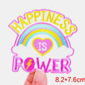 We recommend sewing on this Cute 'Happiness Is Power | Rainbow' Embroidered Patch for jackets, vests and heavy duty use. This Cute 'Happiness Is Power | Rainbow' Embroidered Patch can be ironed on to denim items.