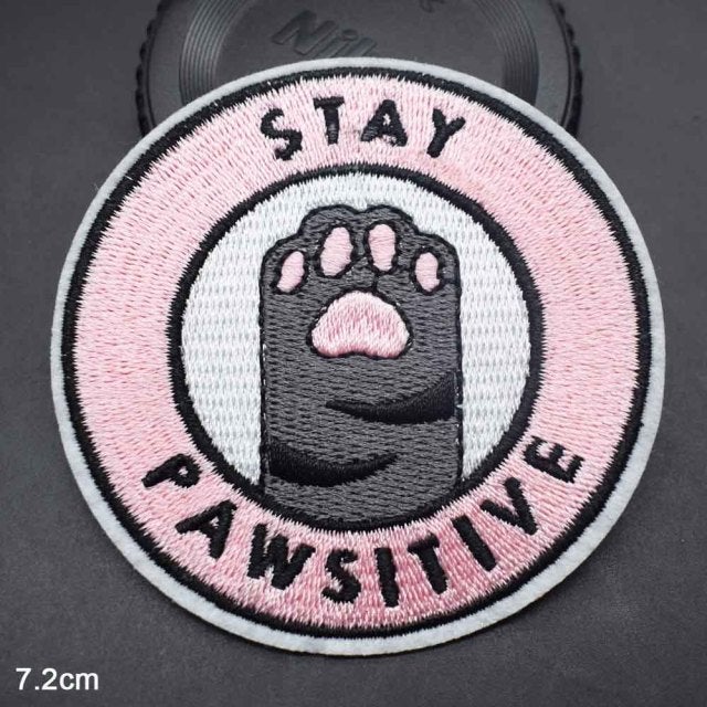 Order your Cute Paw 'Stay Pawsitive' Embroidered Sew Iron On Patch today!