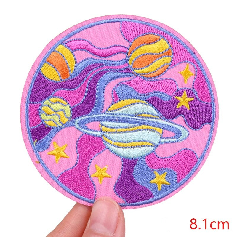 Turn some heads with our Cute 'Planets and Stars' Embroidered Patch! Our Cute 'Planets and Stars' Embroidered Patch is great for adding to denim jackets, bags, and more. Our Cute 'Planets and Stars' Embroidered Patch is made for the most demanding of necessities.