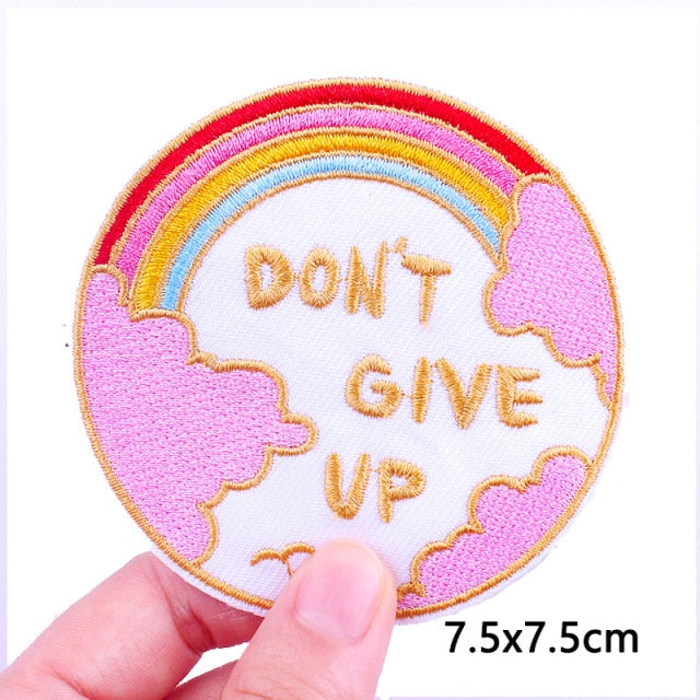 Turn some heads with our Cute Rainbow 'Don't Give Up' Embroidered Sew Iron On Patch! Our Cute Rainbow 'Don't Give Up' Embroidered Sew Iron On Patch is great for adding to denim jackets, bags, and more. Our Cute Rainbow 'Don't Give Up' Embroidered Sew Iron On Patch is made for the most demanding of necessities.