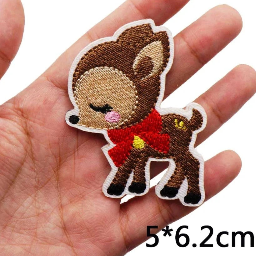 Cute Reindeer 'Red Bow' Embroidered Patch