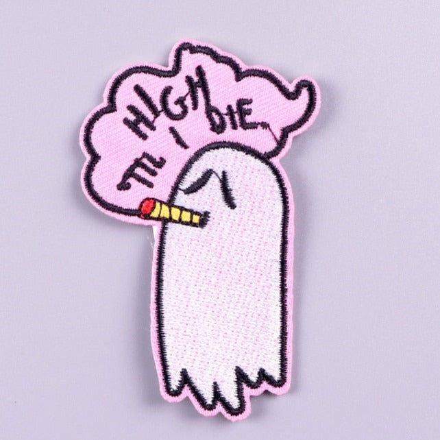 Order your Cute Smoking Boo Ghost 'High Till I Die' Embroidered Velcro Patch today!