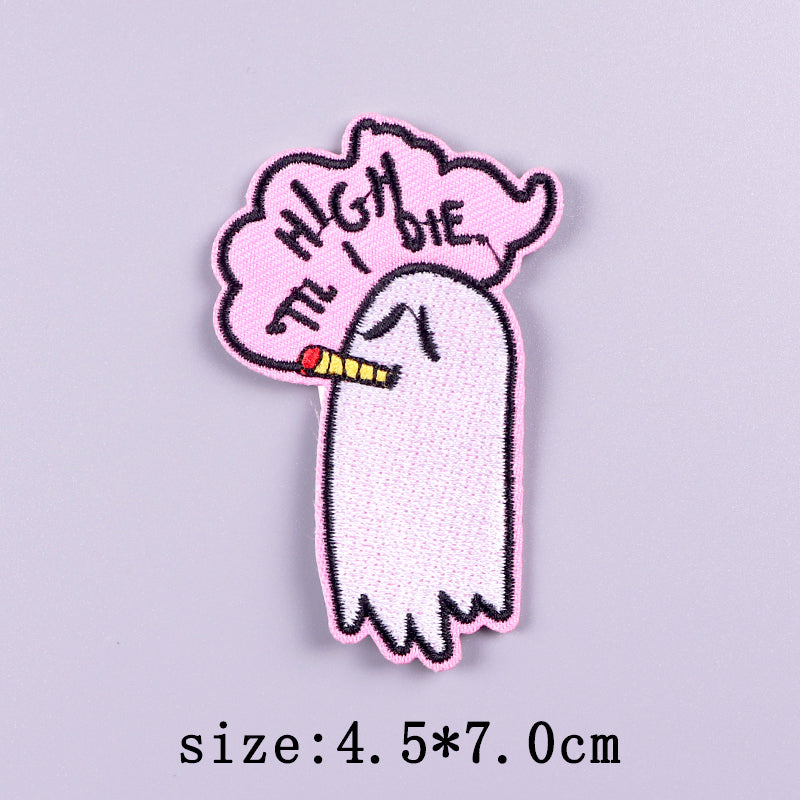 We recommend sewing on this Cute Smoking Boo Ghost 'High Till I Die' Embroidered Velcro Patch for jackets, vests and heavy duty use. This Cute Smoking Boo Ghost 'High Till I Die' Embroidered Velcro Patch can be ironed on to denim items.