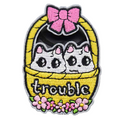Cute 'Two Kittens In Basket | Trouble' Embroidered Patch Description: