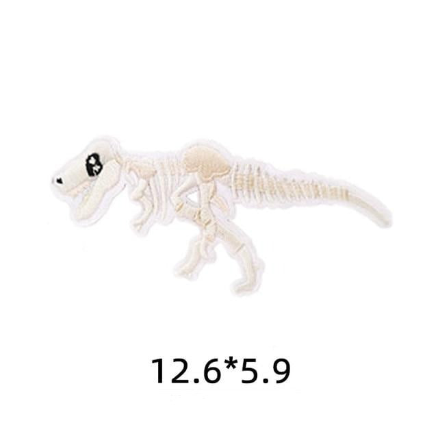 We recommend sewing on this Dinosaur 'T-Rex | Skeleton' Embroidered Sew Iron On Patch for jackets, vests and heavy duty use. This Dinosaur 'T-Rex | Skeleton' Embroidered Sew Iron On Patch can be ironed on to denim items.