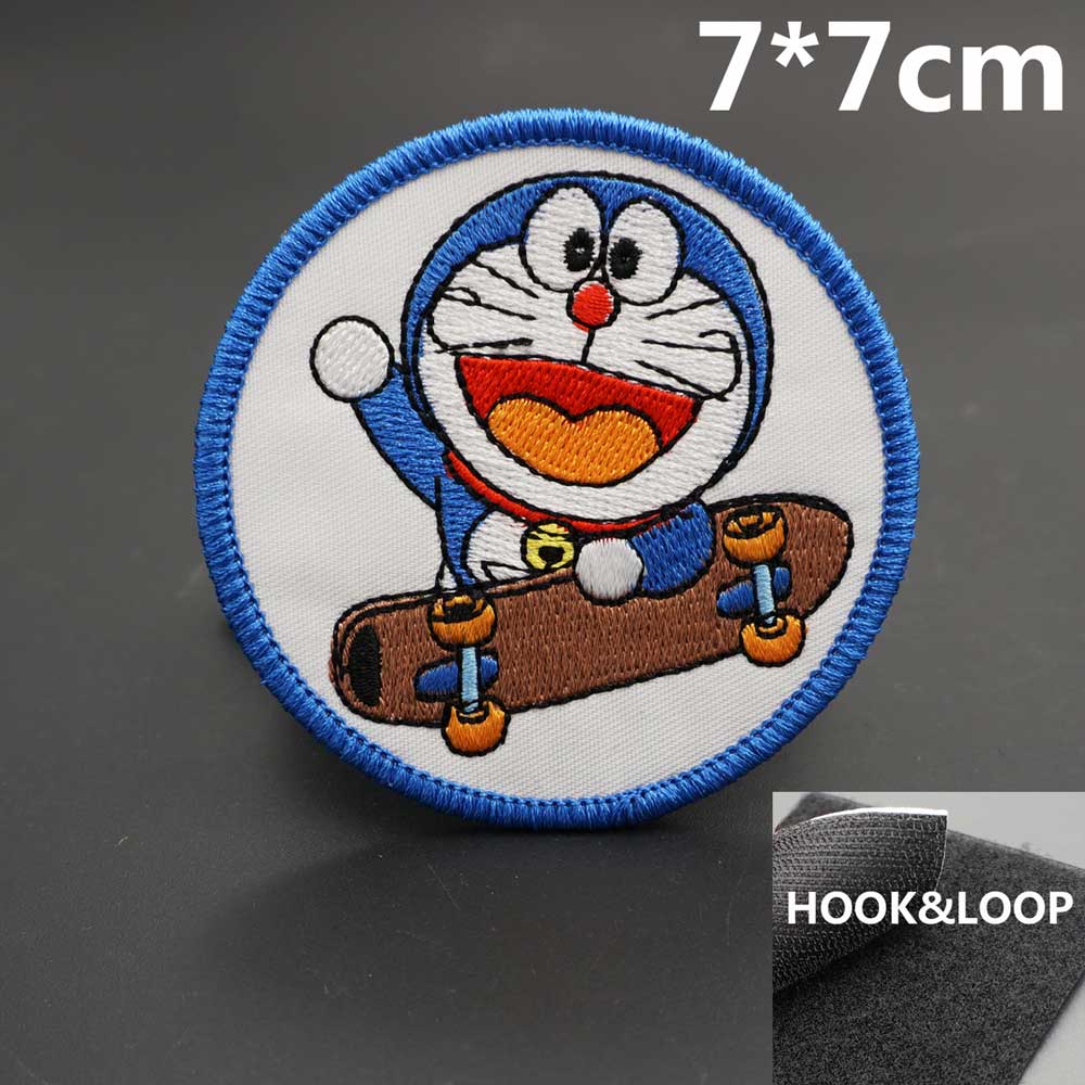 We recommend sewing on this Doraemon 'Skateboard | Round' Embroidered Velcro Patch for jackets, vests and heavy duty use. This Doraemon 'Skateboard | Round' Embroidered Velcro Patch can be ironed on to denim items.