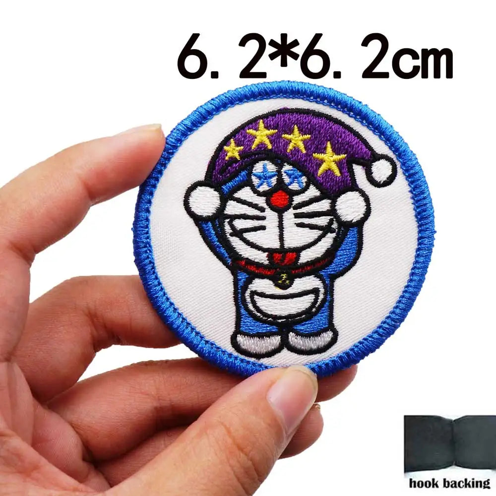 We recommend sewing on this Doraemon 'Wearing Purple Hat | Round' Embroidered Velcro Patch for jackets, vests and heavy duty use. This Doraemon 'Wearing Purple Hat | Round' Embroidered Velcro Patch can be ironed on to denim items.