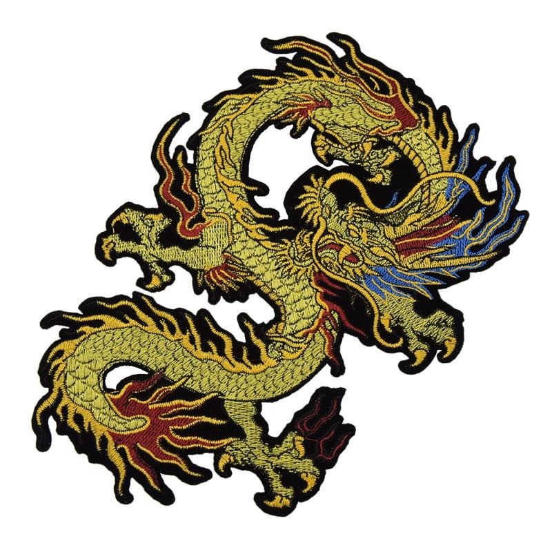 Dragon 'Golden' Embroidered Sew Iron On Patch Description: