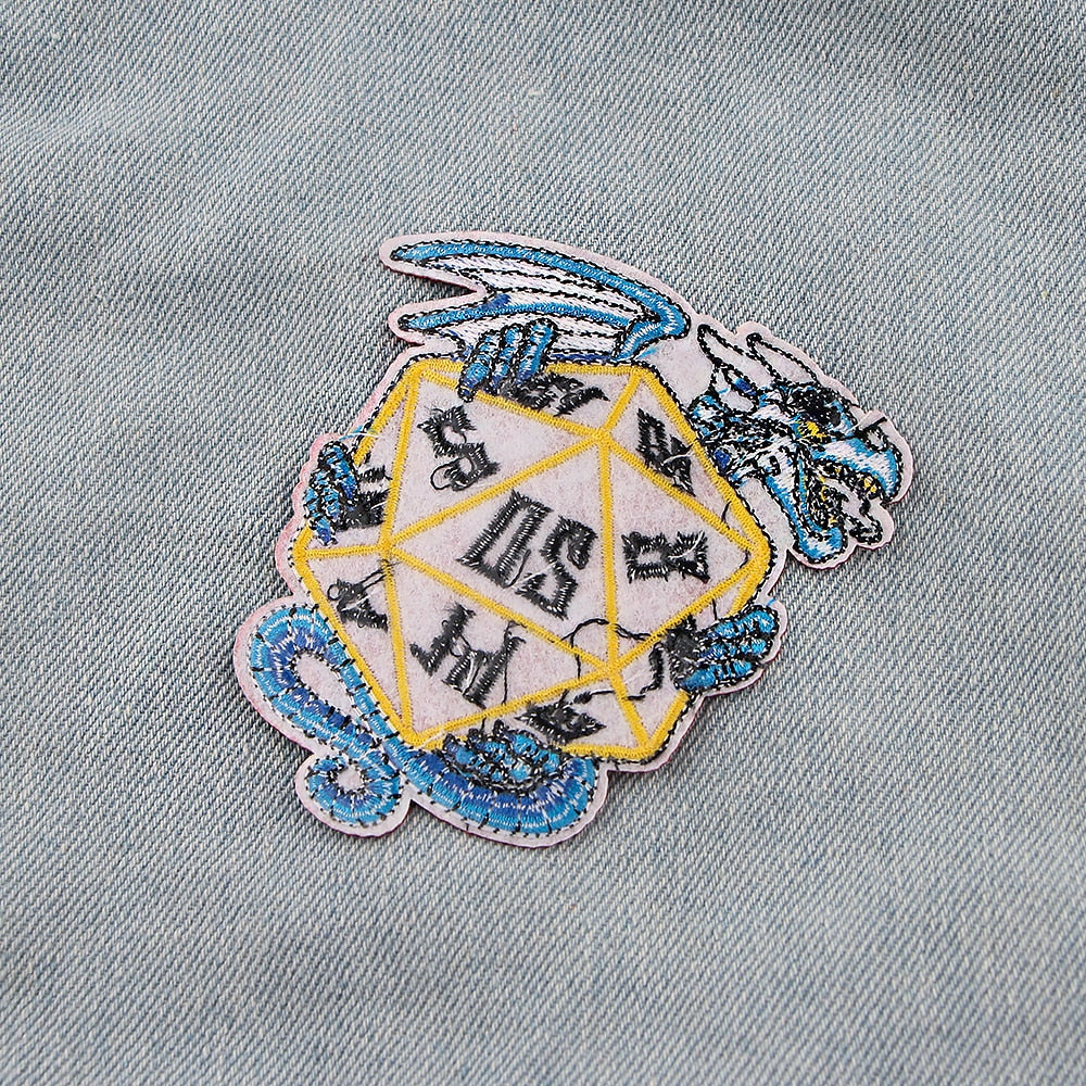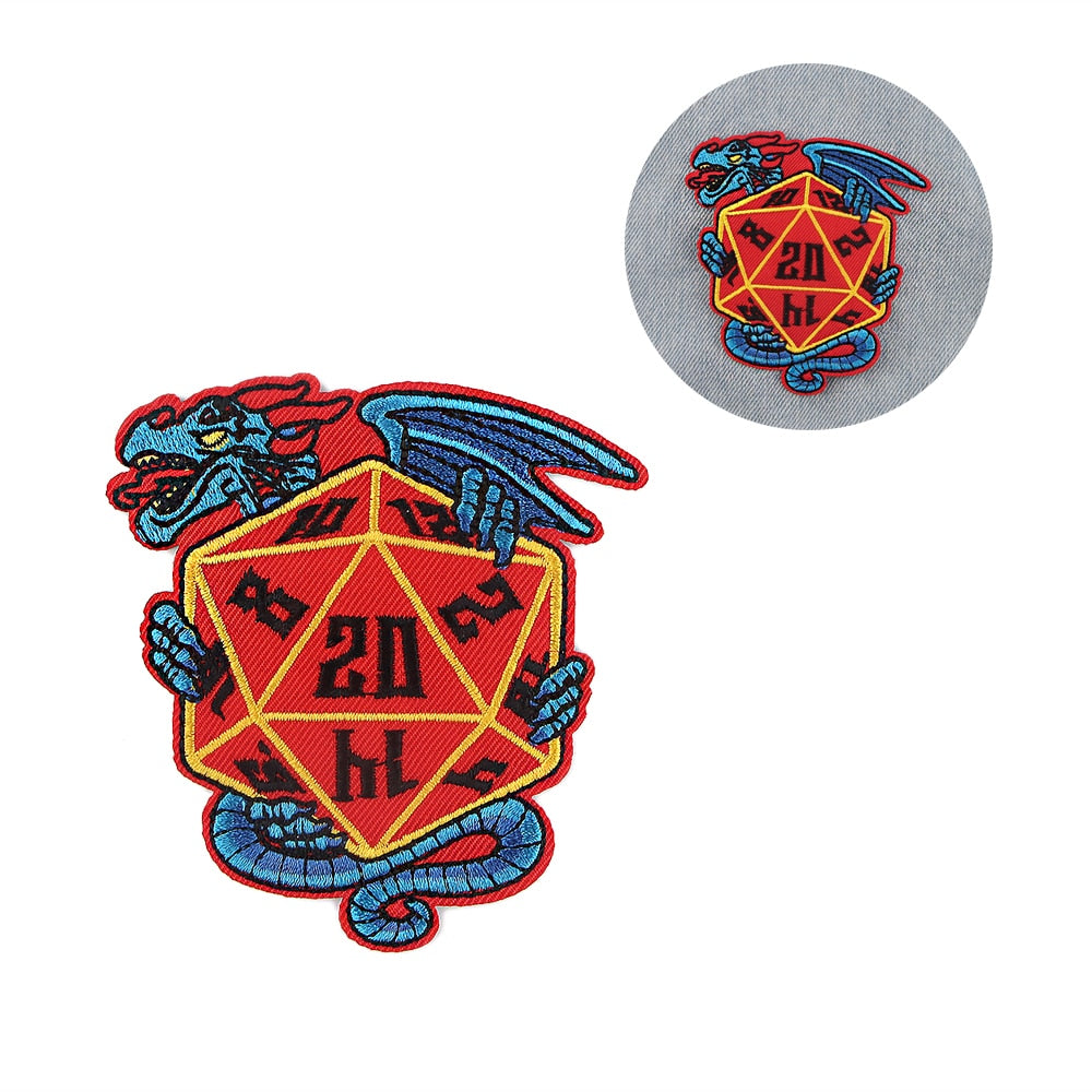 We recommend sewing on this Dungeons & Dragons 'Dragon Dice | Red' Embroidered Sew Iron On Patch for jackets, vests and heavy duty use. This Dungeons & Dragons 'Dragon Dice | Red' Embroidered Sew Iron On Patch can be ironed on to denim items.