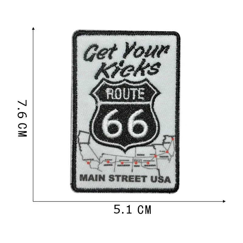 Emblem 'Route 66 | Get Your Kicks' Embroidered Patch Description: