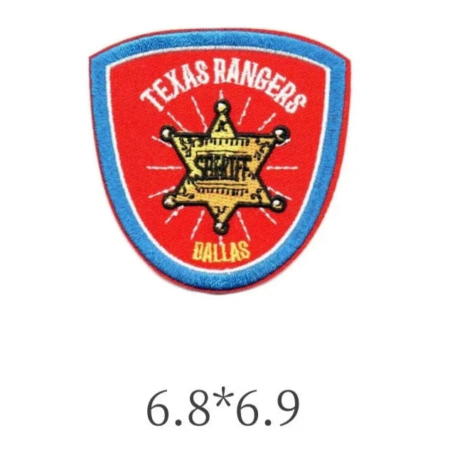 We recommend sewing on this Emblem 'Texas Rangers Sheriff' Embroidered Patch for jackets, vests and heavy duty use. This Emblem 'Texas Rangers Sheriff' Embroidered Patch can be ironed on to denim items.