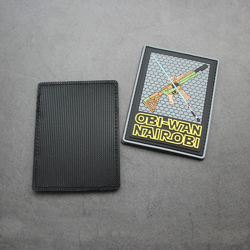 Turn some heads with our Obi-Wan Nairobi 'Lightsaber and Rifle' PVC Rubber Velcro Patch! Our Obi-Wan Nairobi 'Lightsaber and Rifle' PVC Rubber Velcro Patch is durable and incredibly bold. This Obi-Wan Nairobi 'Lightsaber and Rifle' PVC Rubber Velcro Patch is made for the most demanding of necessities.